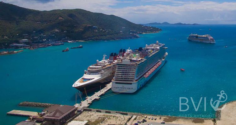 The length of the cruise pier 1,312ft and the width 60ft. The pier was reengineered and strengthened to facilitate vessels up to 180,000 GRT. The Tortola cruise pier can now facilitate all class of ships with the exception of the Oasis whose maximum tonnage exceeds 200,000 GRT, and facilitate two large ships at anchor in harbour. This allows the port to facilitate up to four cruise ships at a time. Ships tenders are accommodated at the tender pier adjacent to the cruise pier.