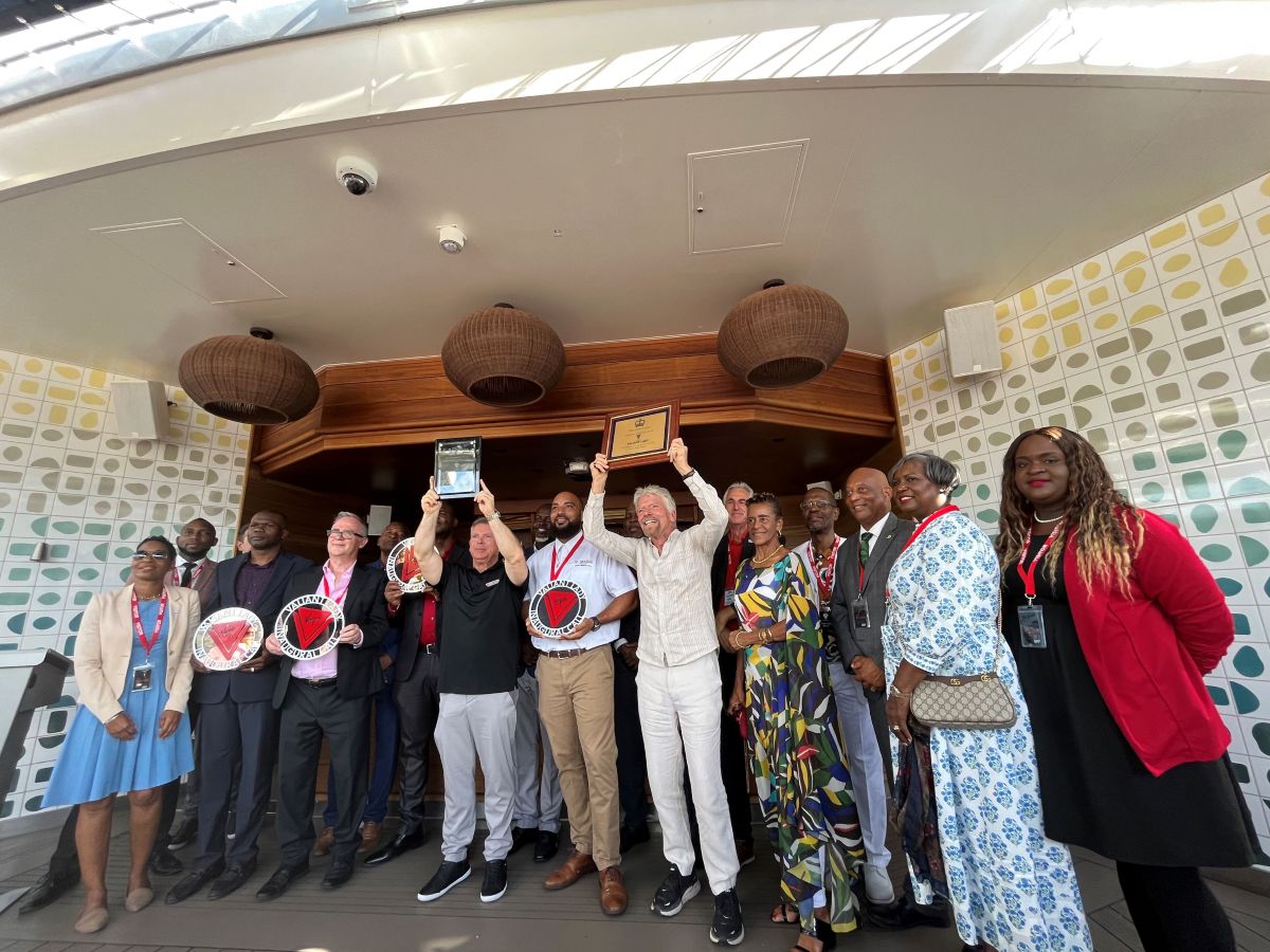 A plaque was presented on behalf of the Government and people of the Virgin Islands by the Premier and Minister of Finance, Hon. Dr. Natalio Wheatley to Sir Richard Branson and the captain of the Valiant Lady, Captain Justin Lawes commemorating the vessel’s inaugural call to the Territory. The plaque and key exchange ceremony took place onboard the ship while it was docked at the Cruise Pier in Tortola.